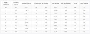 Material do Tubo interno: borracha EPDM preto, liso; Reforço: trama sintética de alta resistência, fio helicoidal de aço;